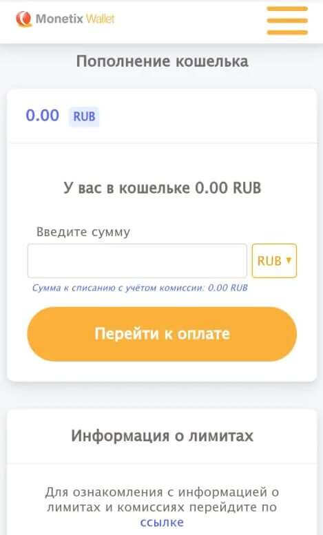 - 6. Для депозита на сайте, необходимо выбрать в Кассе способ пополнения через Monetix Wallet. Выбрать необходимую сумму депозита и нажать "Продолжить".